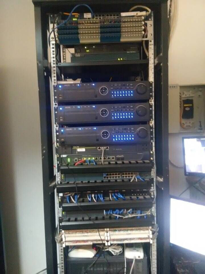 施工內容:監控安裝(海康半球攝像機)、無線覆蓋工程安裝(采用IP-COM無線AP)、會議系統所有設備(一臺高清投影機、音響、功放、無線調頻話筒等)