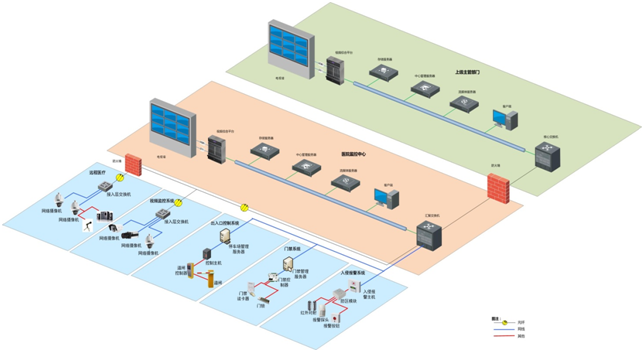 醫(yī)院綜合安防系統(tǒng)不僅集成了各個安防子系統(tǒng),還集成了遠程探視、遠程會診、手術(shù)示教等遠程醫(yī)療系統(tǒng)。同時醫(yī)院的管理人員亦可以通過平臺,實現(xiàn)對醫(yī)院內(nèi)部人、財、物的可視化管理。