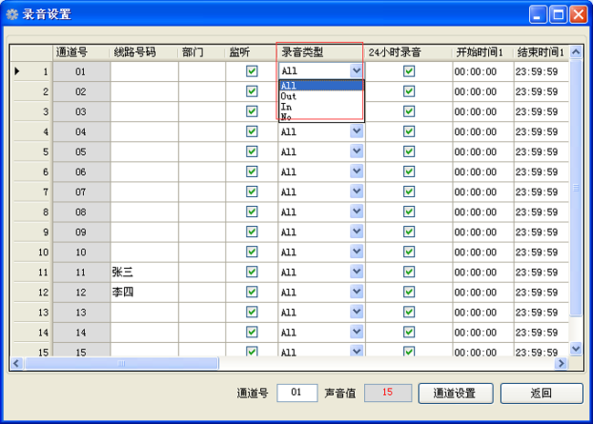 可實時監聽每一條通道的通話內容。
