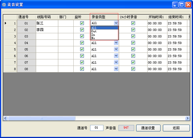 可實時監(jiān)聽每一條通道的通話內(nèi)容。