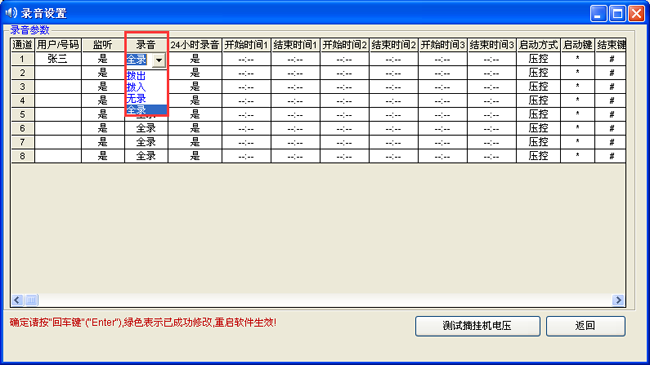 錄音啟動方式靈活,具有壓控、鍵控多種啟動方式,可以是某段時間內錄音,也可以是24小時錄音,錄音起始時間可以靈活設置。
