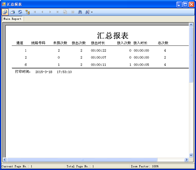 9、打印匯總界面,可按月/天統計話務人員的呼入次數,呼出次數,通話時長等,并可以把統計導出Excel進行保存。