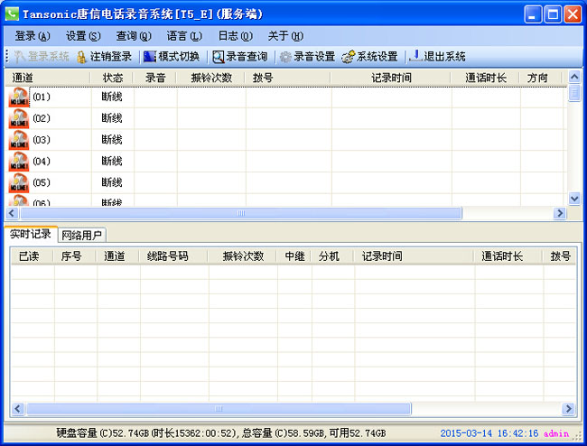 ●通道數:60通道(單機最高安裝一張錄音卡,可以做到60路同時錄音)
