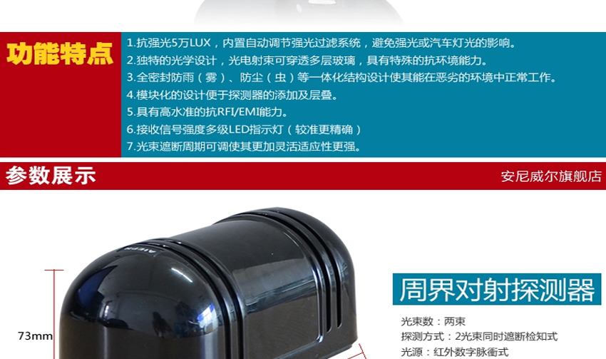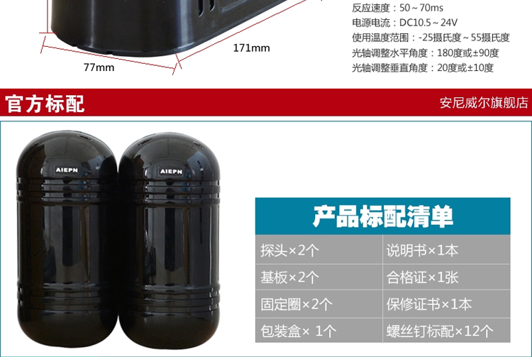安尼威爾(Aney Well)雙光束60米有線紅外對(duì)射探測(cè)器