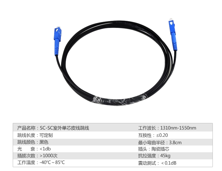 室外單芯皮線光纜SC-SC皮線光纖跳線成品