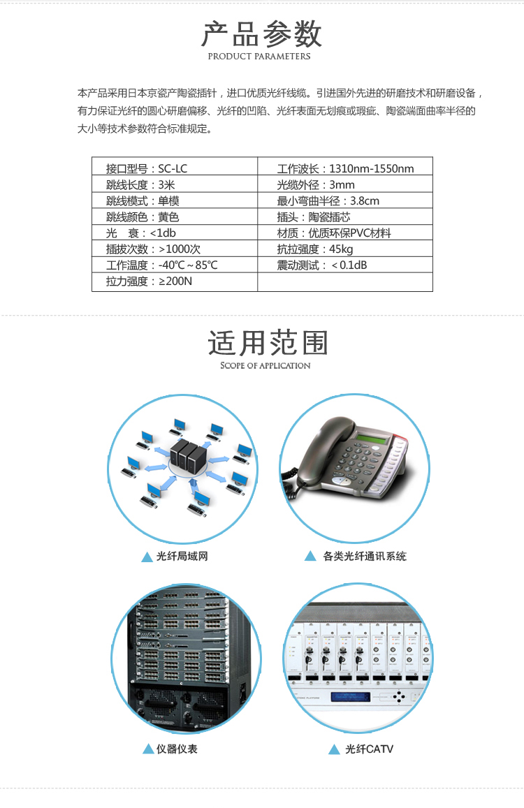 3米SC-LC單模光纖跳線 收發器尾纖