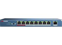 DS-3E0109P-S非網管POE交換機支持8口百兆PoE電口,可通過網線直接供電,PoE自適應802.3af(15.4W)和802.3at(30W)標準,整機PoE最大輸出功率為120W,通過普通的5類雙絞線即可為AP、IP攝像頭、IP電話等PoE受電設備同時傳輸電力和數據。