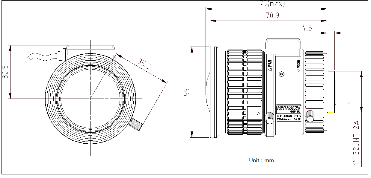 像面尺寸 Φ9mm(1/1.8")