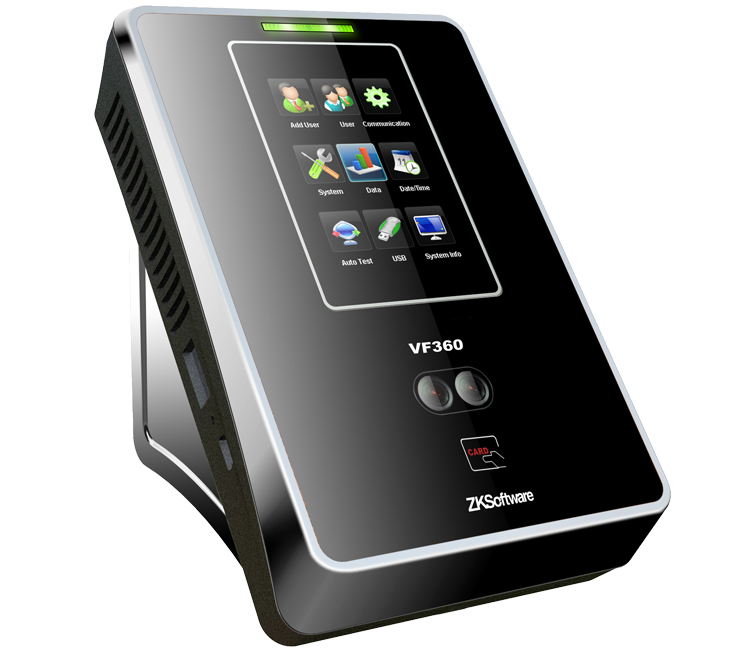 VF360為中控科技最新推出的一款全觸摸3寸彩屏面部機,集考勤門禁于一體,支持多種驗證方式(人臉、卡、卡+人臉、密碼、人臉+密碼、、密碼+卡、人臉+卡+密碼),采用中控科技最新的ZEM810核心板,ZKFace最新人臉識別算法,容量大,識別速度快,集成高分辨率夜視紅外和彩色雙攝像頭功能,適用范圍廣,不受外界光線的影響,無論是在強光下還是在黑暗中都能進行有效識別。適用于多領域的身份認證系統,及企事業單位考勤門禁管理。