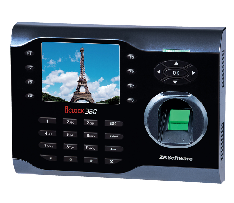 iClock360支持T9輸入法,可以直接通過機器鍵盤輸入漢字,支持U盤上傳下載考勤記錄的功能,是專門針對需要運距離脫機使用的企事業單位進行指紋 考勤而設計的。采用了人性化的界面設計風格,全圖形界面顯示,使人機間更加直觀友好交互。3.5寸6萬5千色高清TFT彩屏,分辨率320X240,尖端 的處理技術,讓你擁有寬視域的視覺享受。內置Linux操作系統,歐洲頂尖的專業化技術,機器可以長期高效的運行。指紋考勤機通過RS232、 RS485、TCP/IP方式與計算機通訊,可多臺聯網使用;識別率高,解決特殊人群指紋質量比較差的問題,適合100-500人的考勤管理。