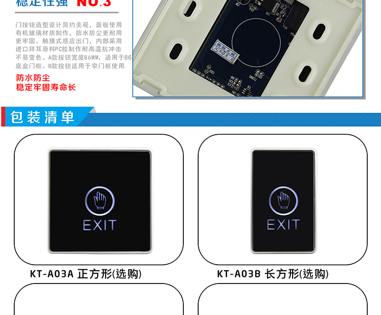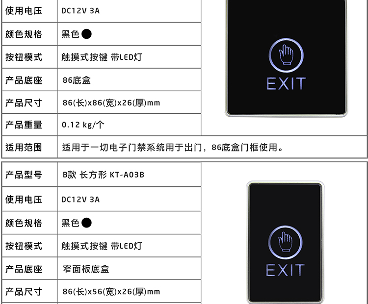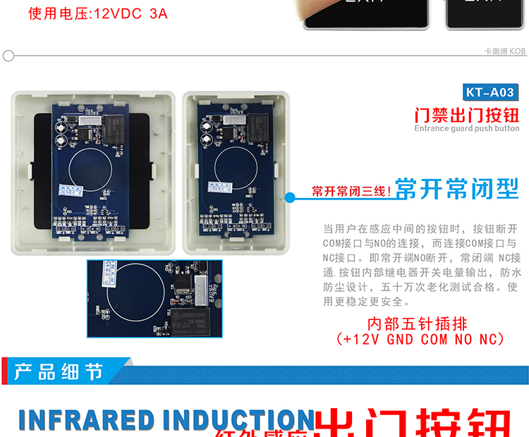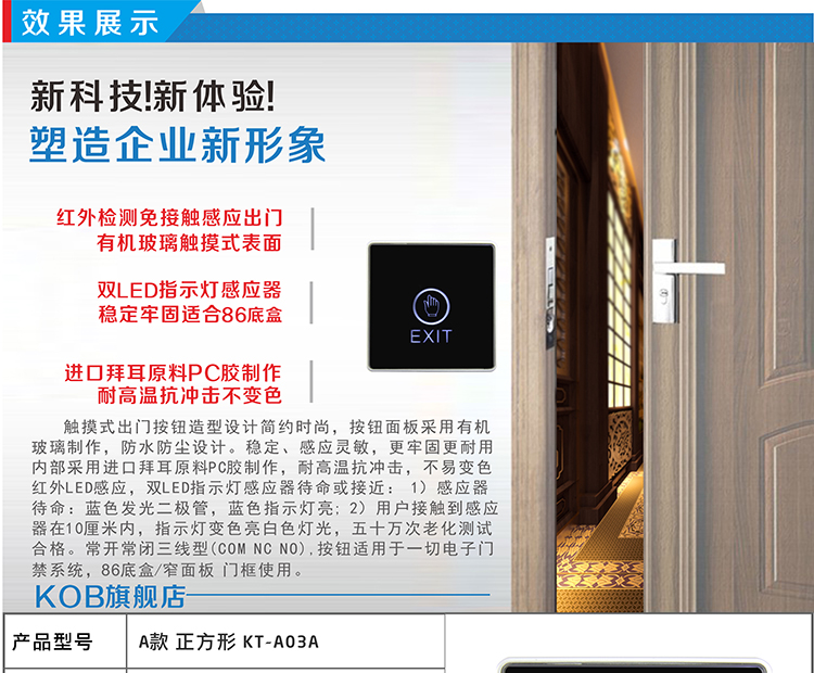 KOB品牌KT-A03觸摸式門禁開關 紅外感應出門開關