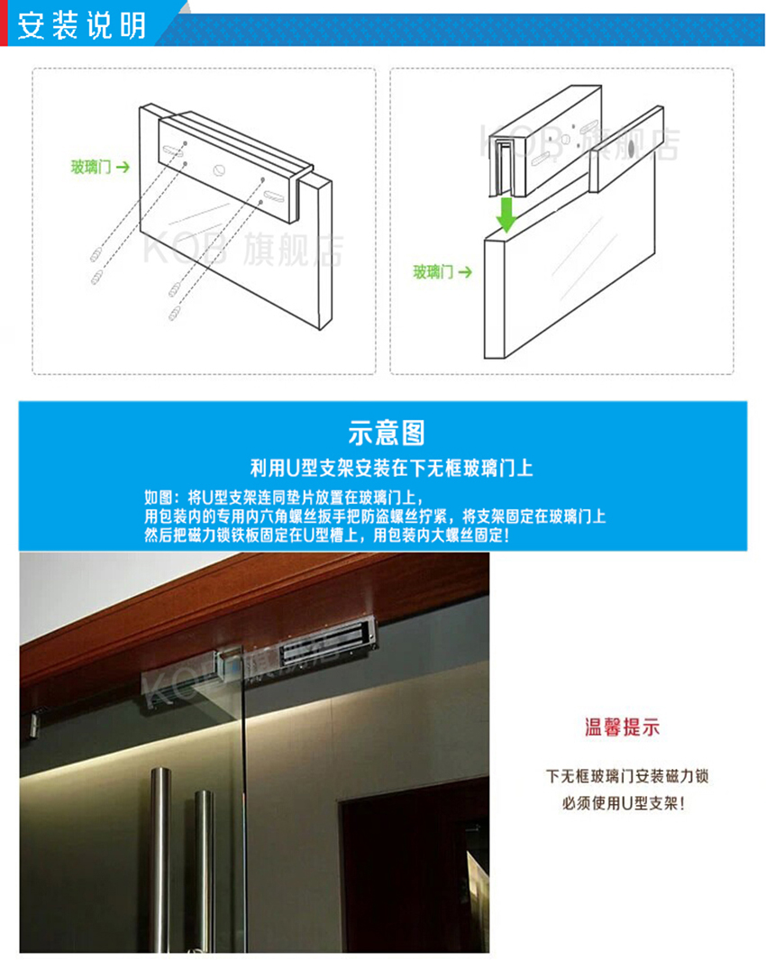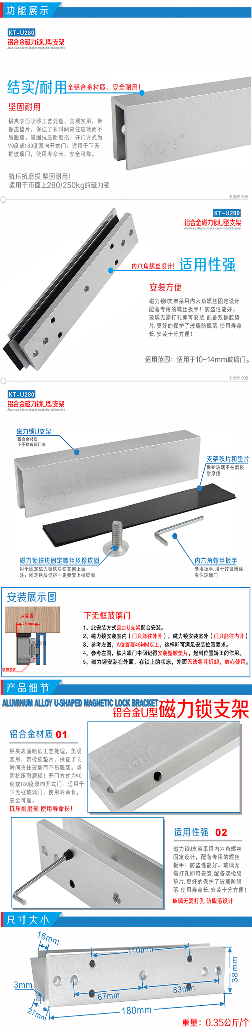 KOB品牌KT-U280280公斤磁力鎖U型支架