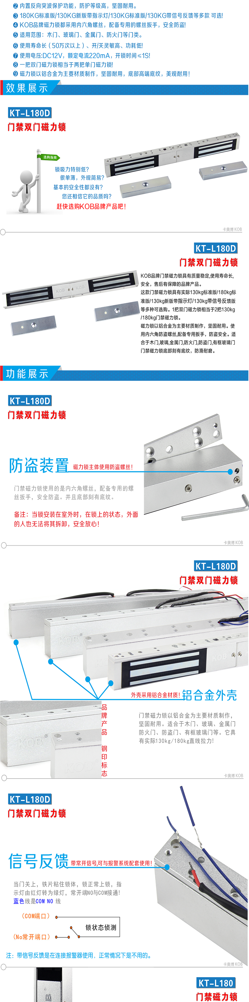 KOB品牌180公斤雙門磁力鎖 帶信號反饋