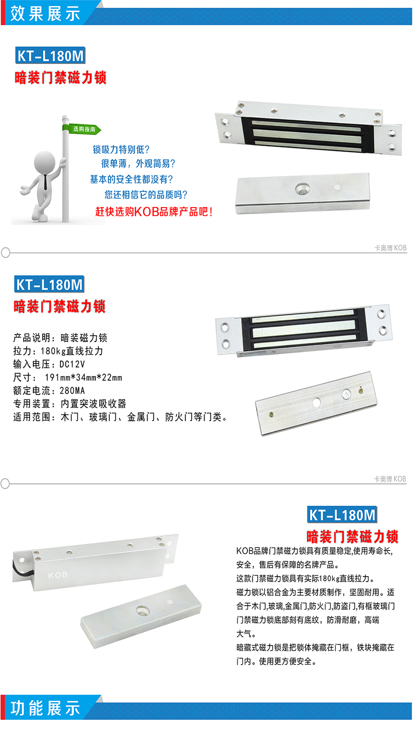 KOB品牌180公斤暗裝磁力鎖
