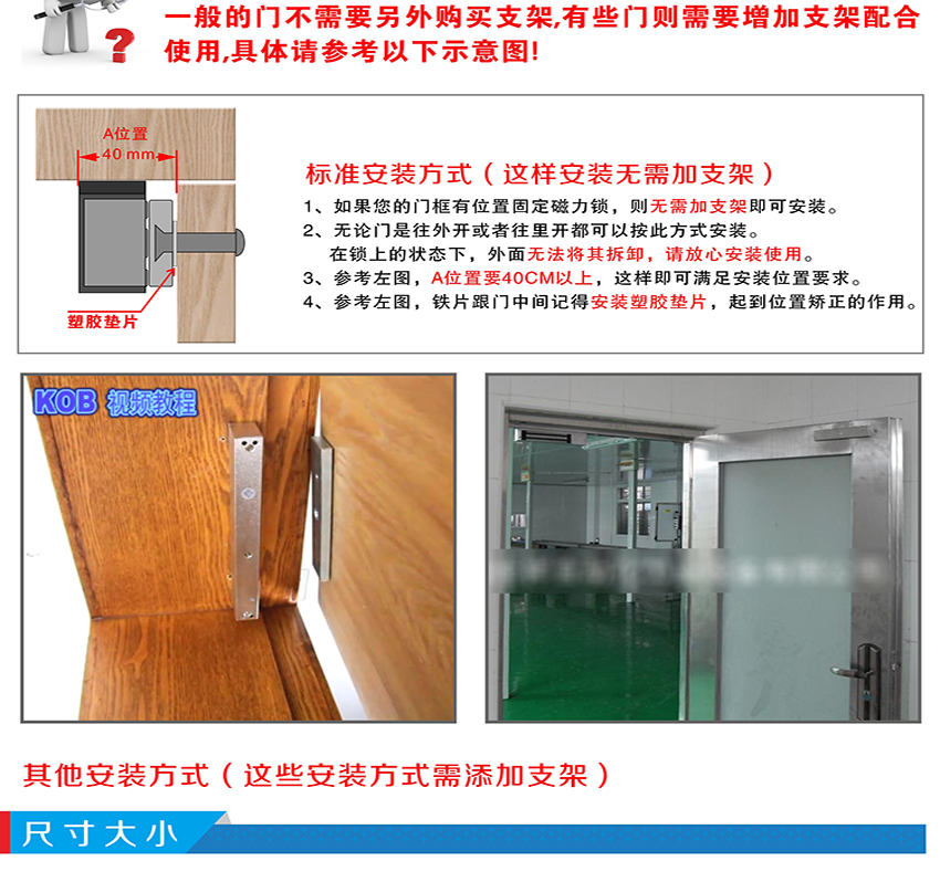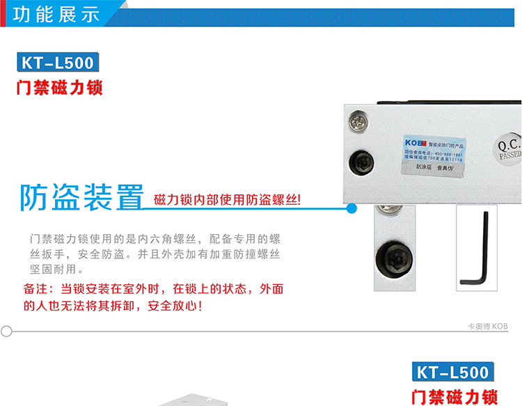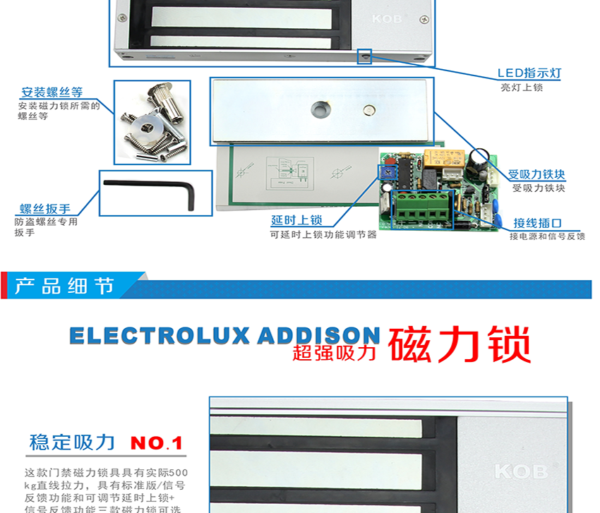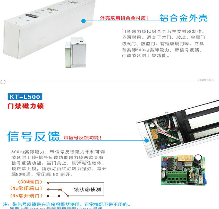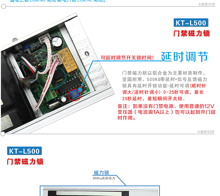 KOB品牌KT-L500 500kg磁力鎖帶延時(shí)功能