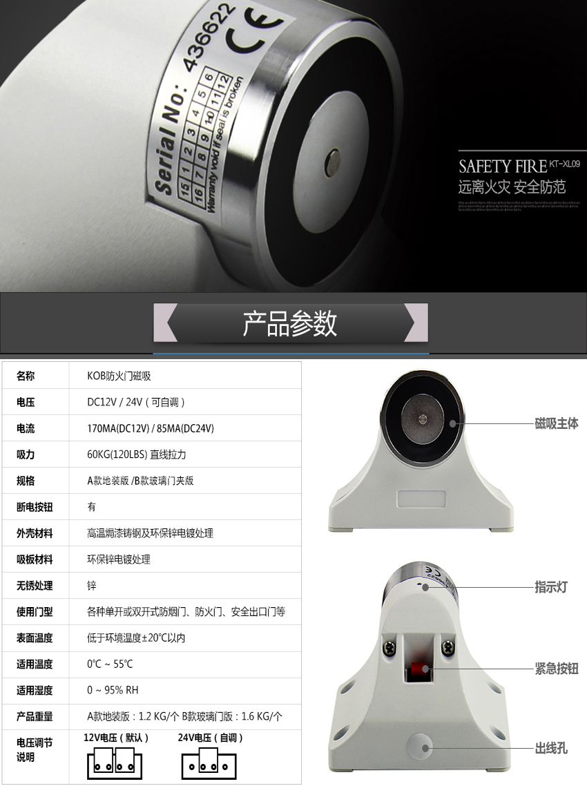 KOB品牌12V24V防火門電磁門吸