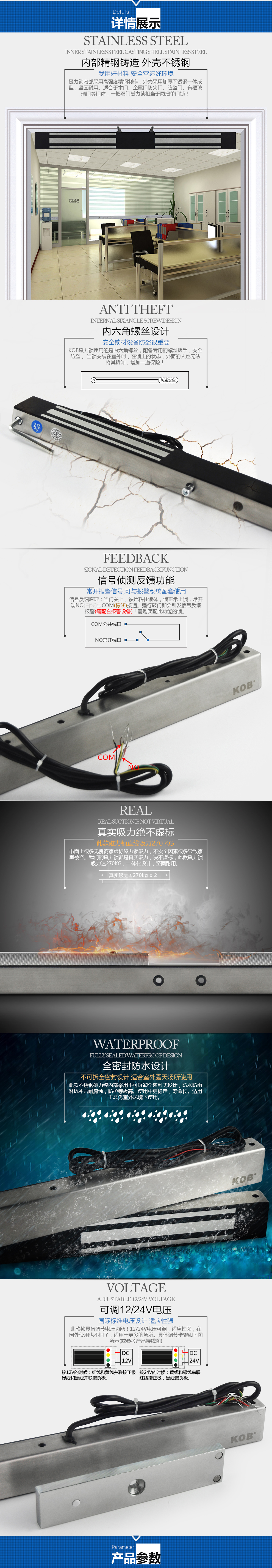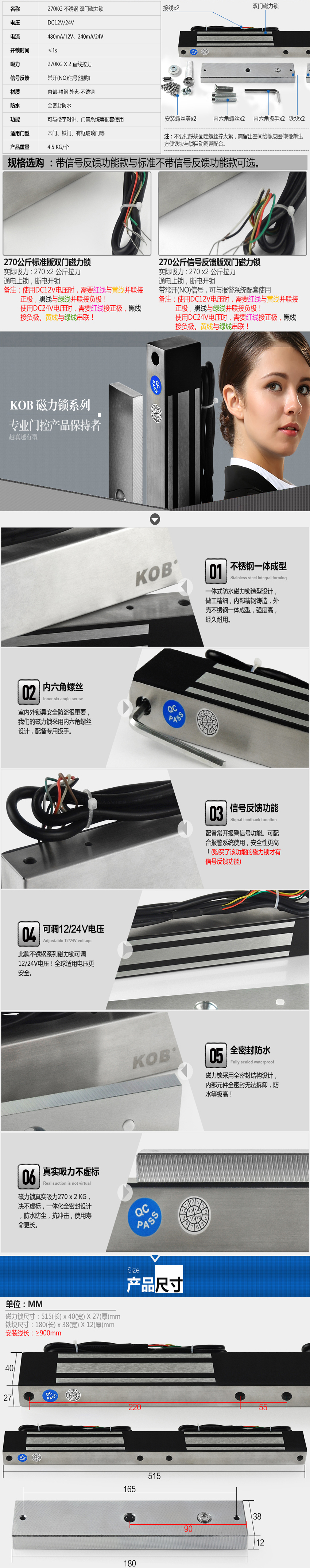 KOB電子門禁系統270公斤雙門磁力鎖