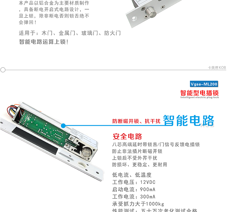 KOB Vseg-ML200門禁八芯專用超低溫電插鎖