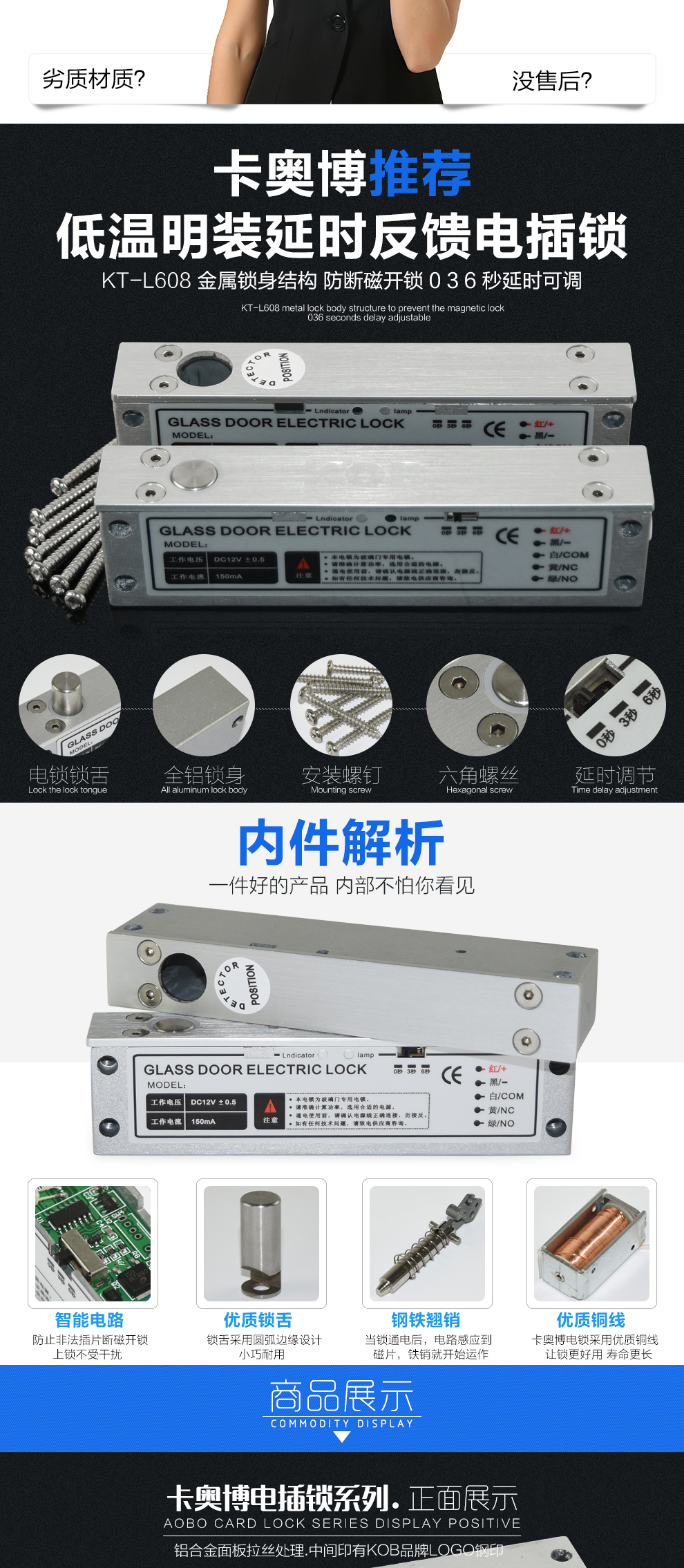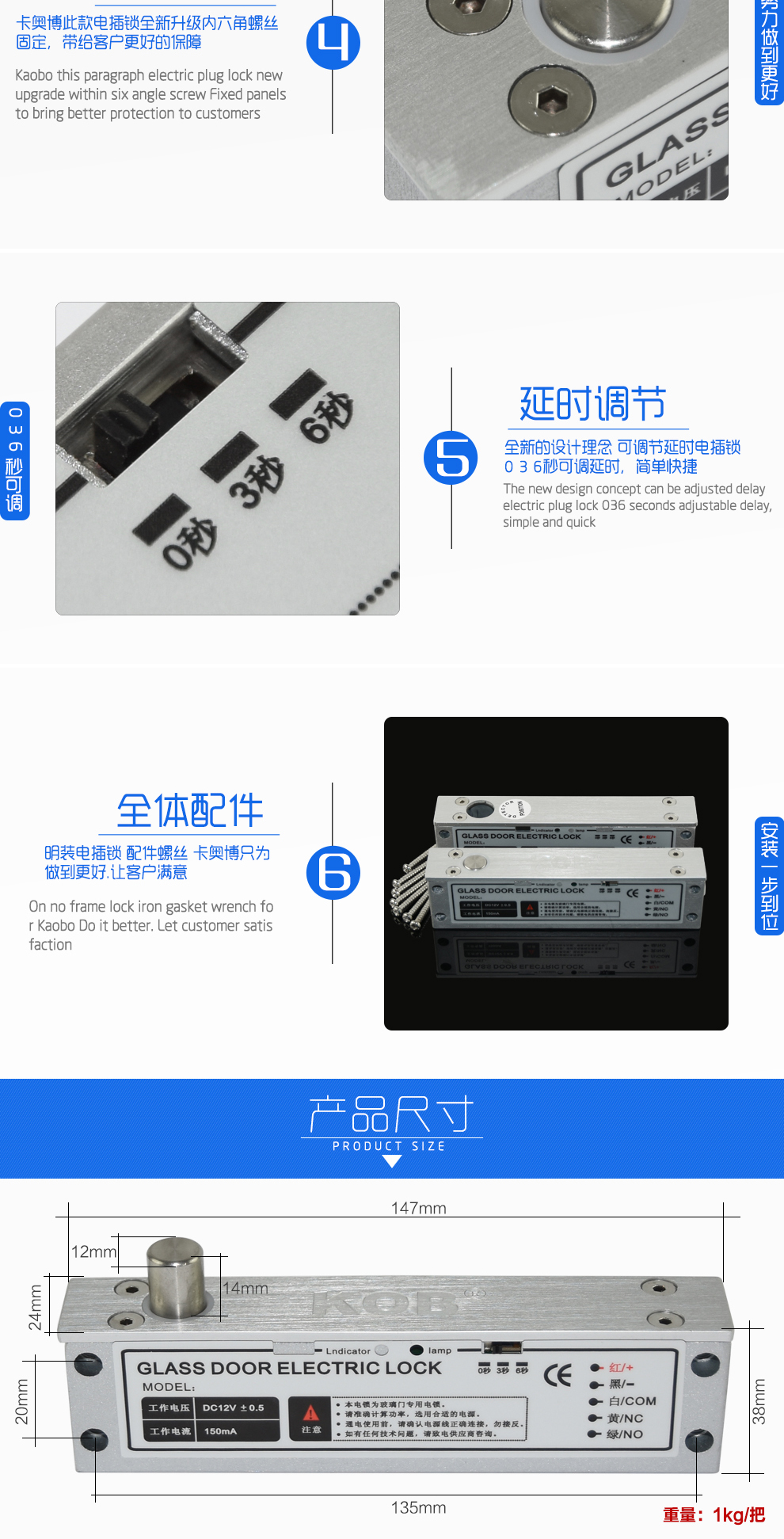 KOB品牌明裝電插鎖 五芯低溫電鎖