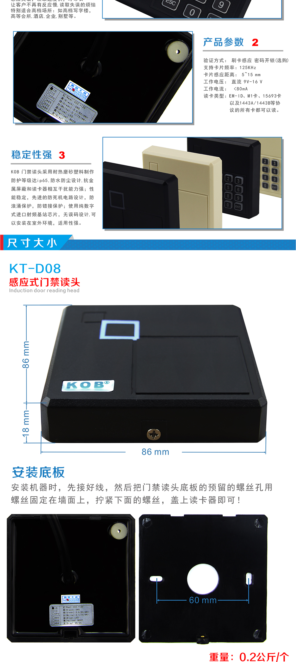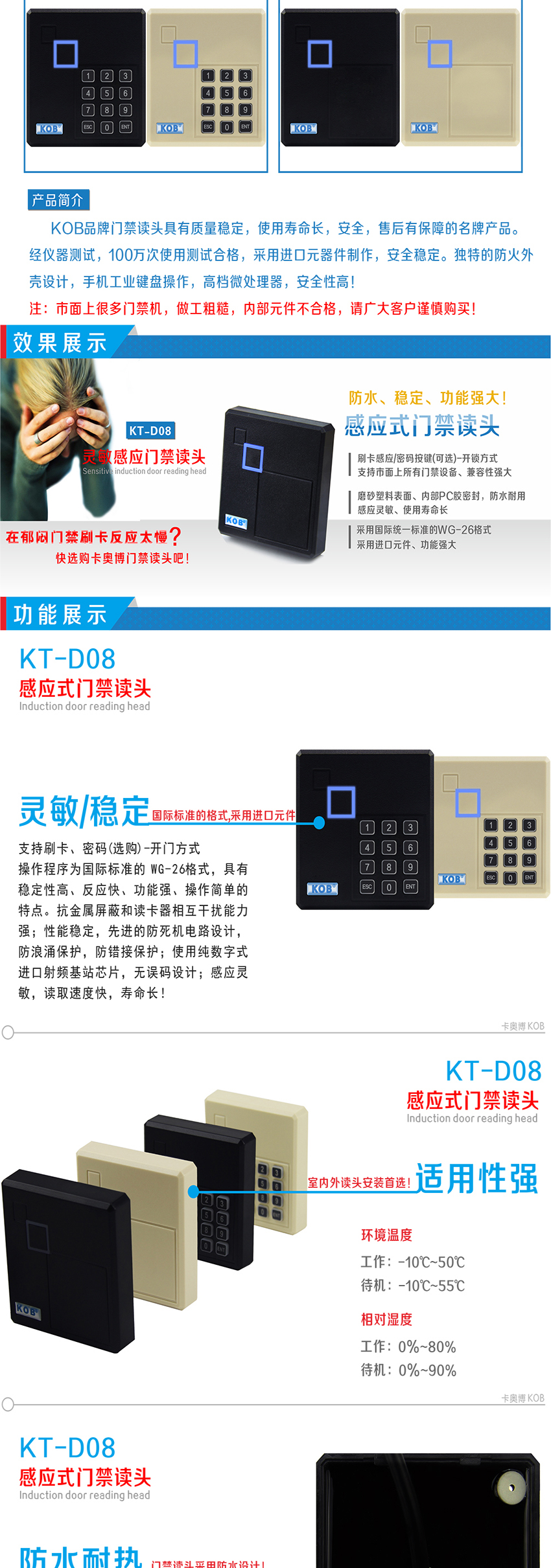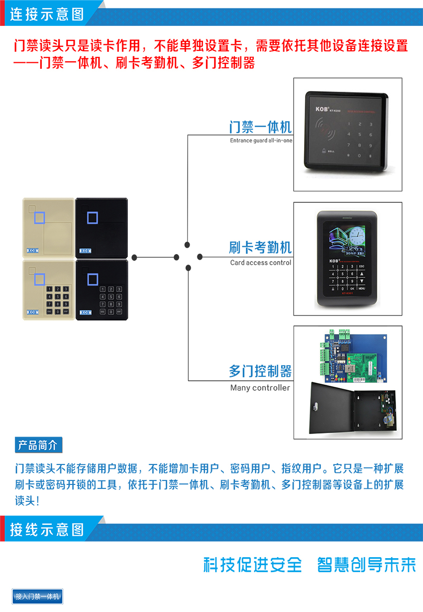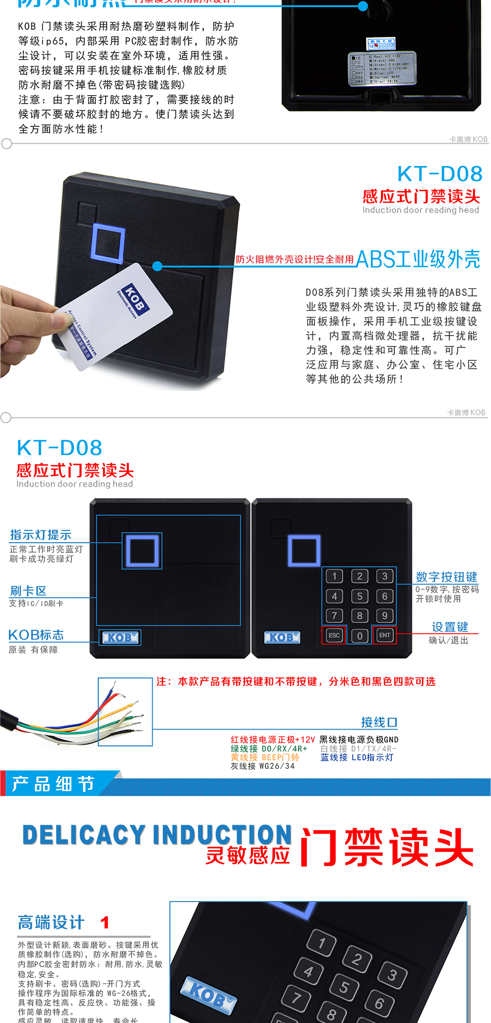 KOB品牌IC ID卡門禁讀頭 米白色刷卡