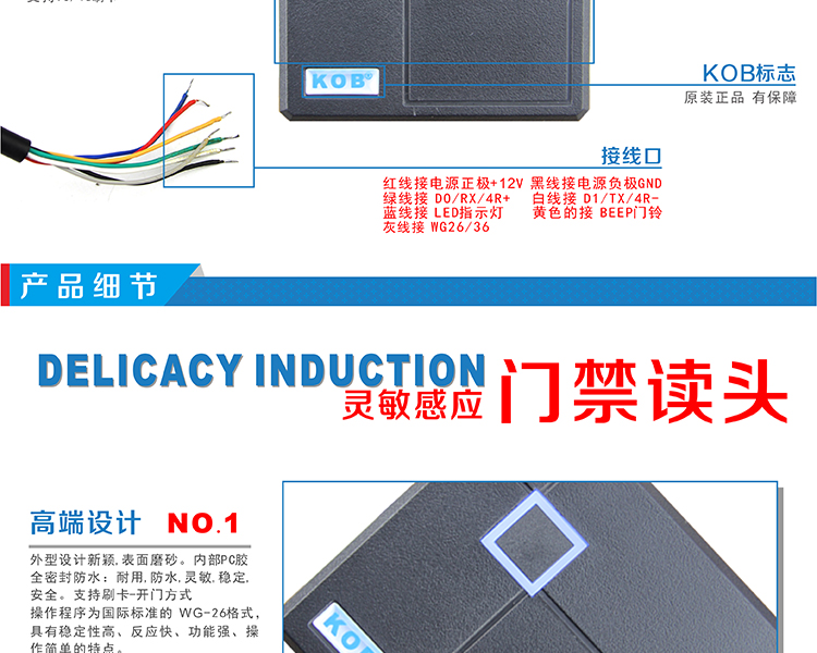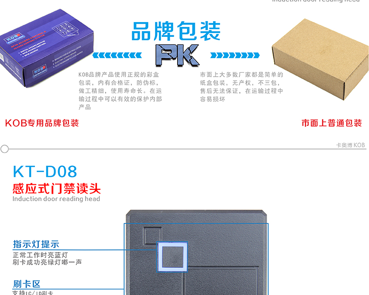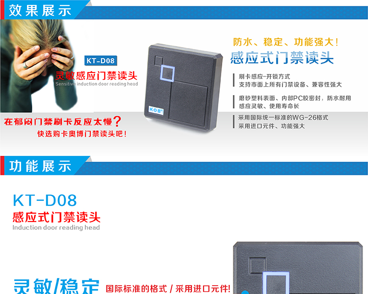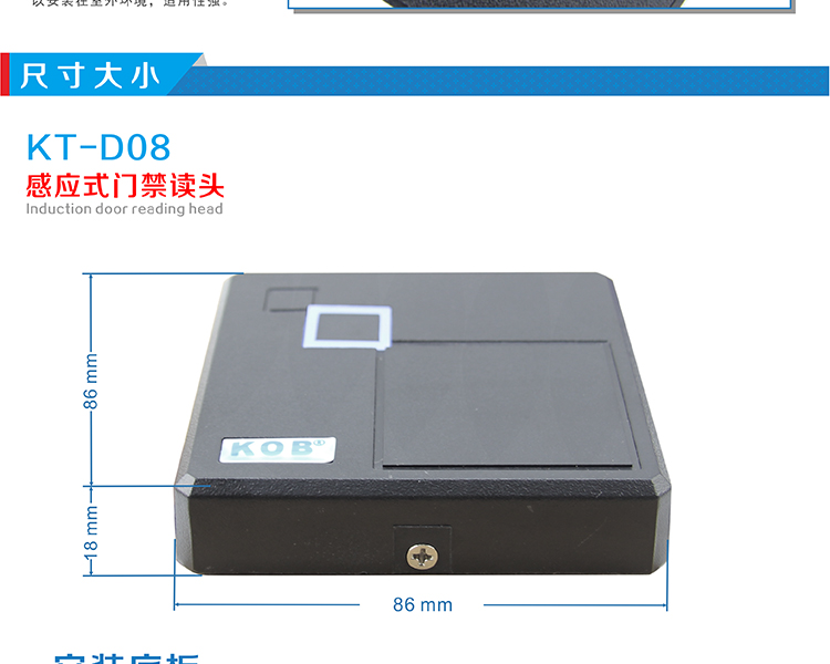 KOB品牌KT-D08 IC ID卡門禁讀頭 黑色外殼