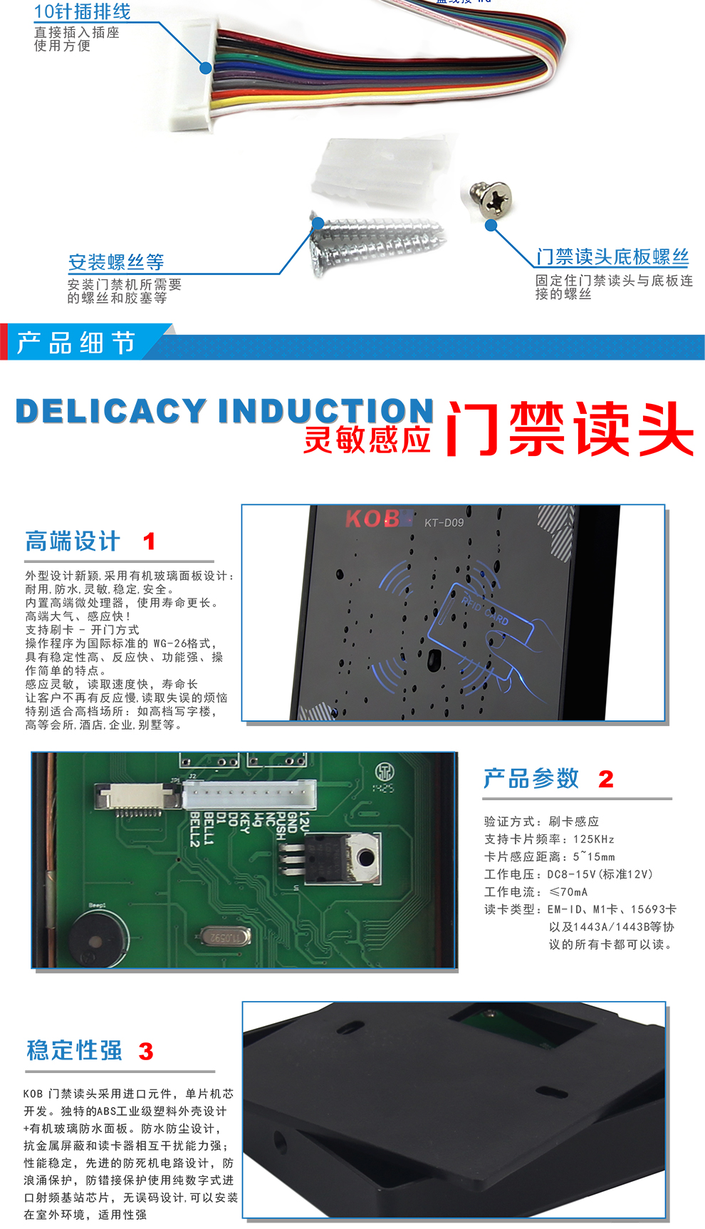 KOB品牌KT-D09m微根WG26門禁讀頭