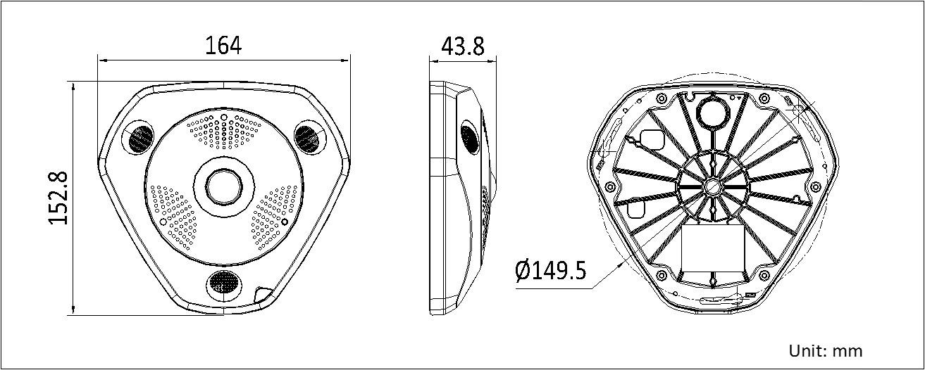 • 采用超廣角鏡頭,可用于拍攝360°環(huán)視畫面,實現(xiàn)無盲區(qū)監(jiān)控