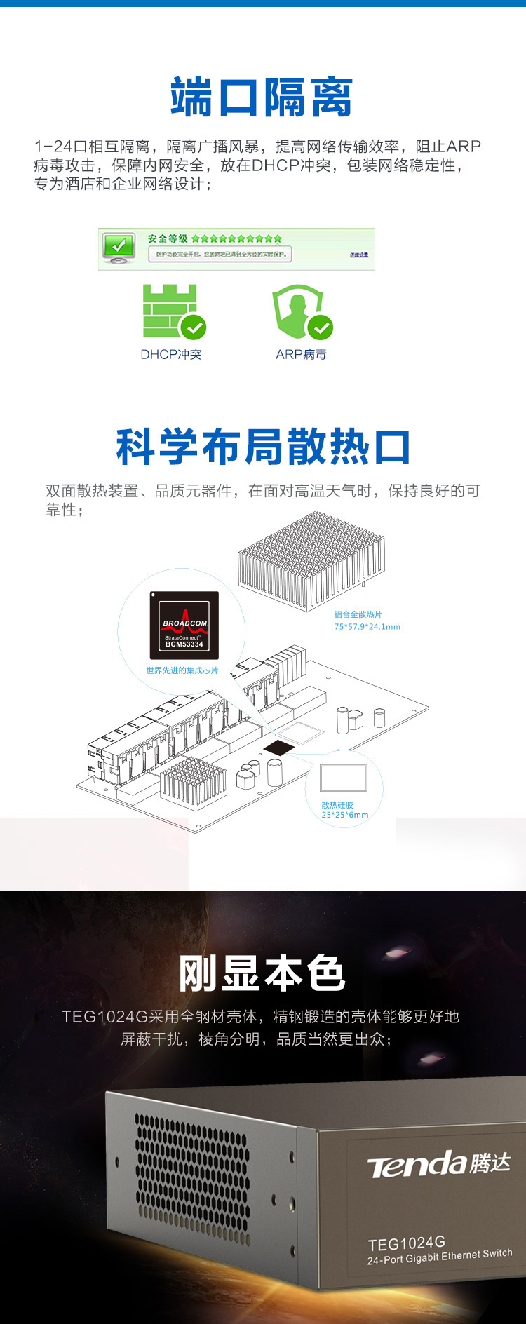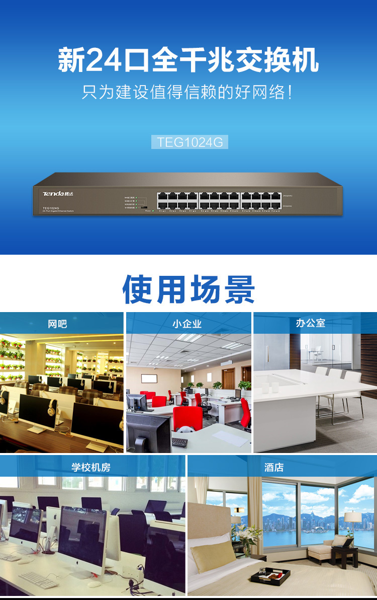 騰達(dá)(Tenda)TEG1024G 24口機(jī)架式全千兆交換機(jī)