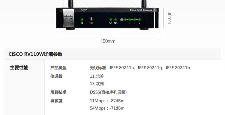 思科(Cisco)RV110W-E-CN-K9 百兆VPN 無線路由器