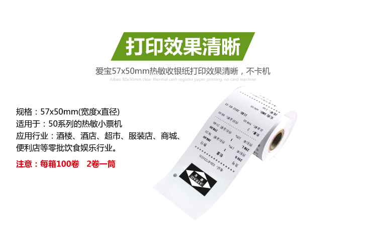 愛寶(Aibao) 57mm*50mm熱敏收銀紙