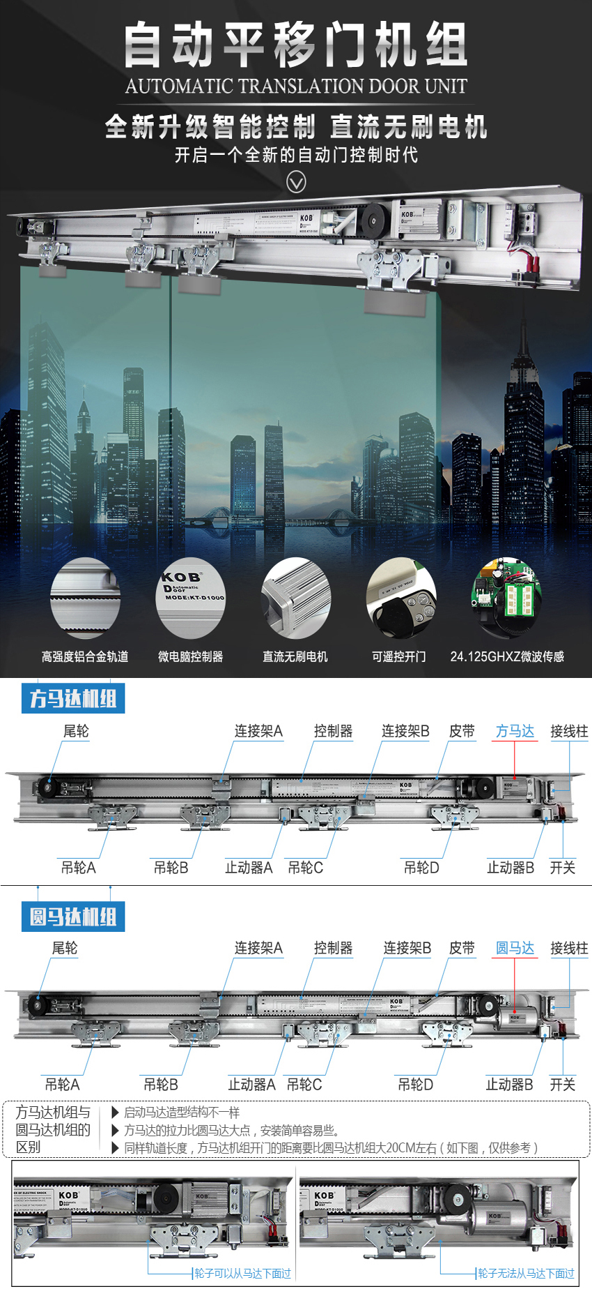 KOB品牌自動平移門 D1000感應自動門整套機組