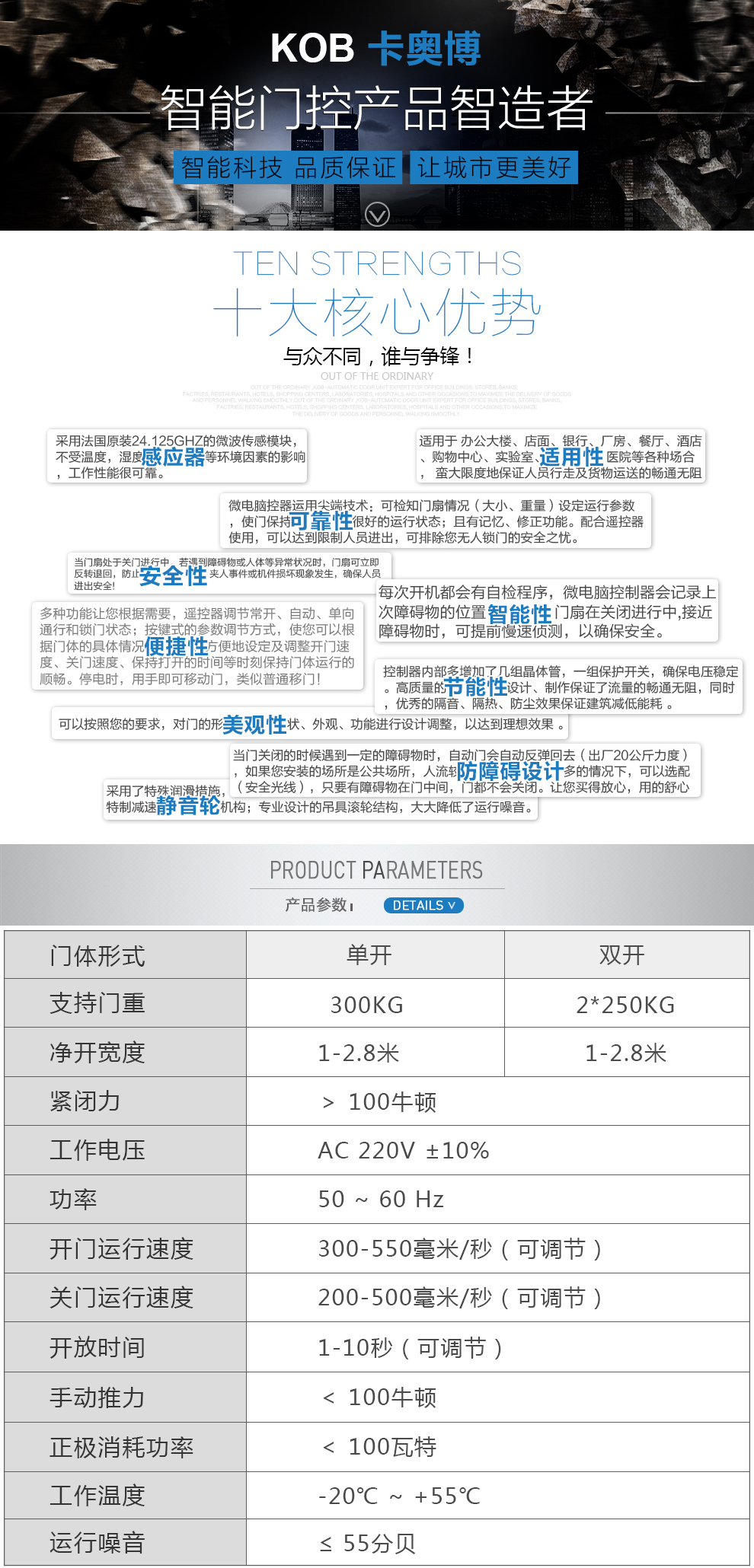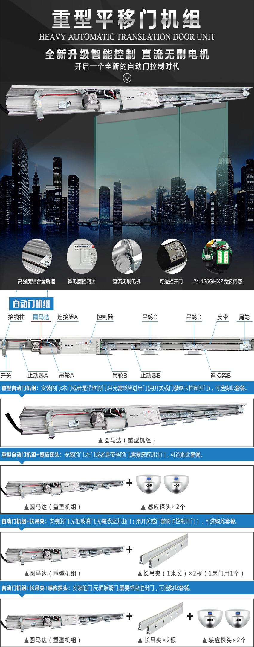 KOB品牌 D2000感應門重型整套機組+感應探頭+長吊夾