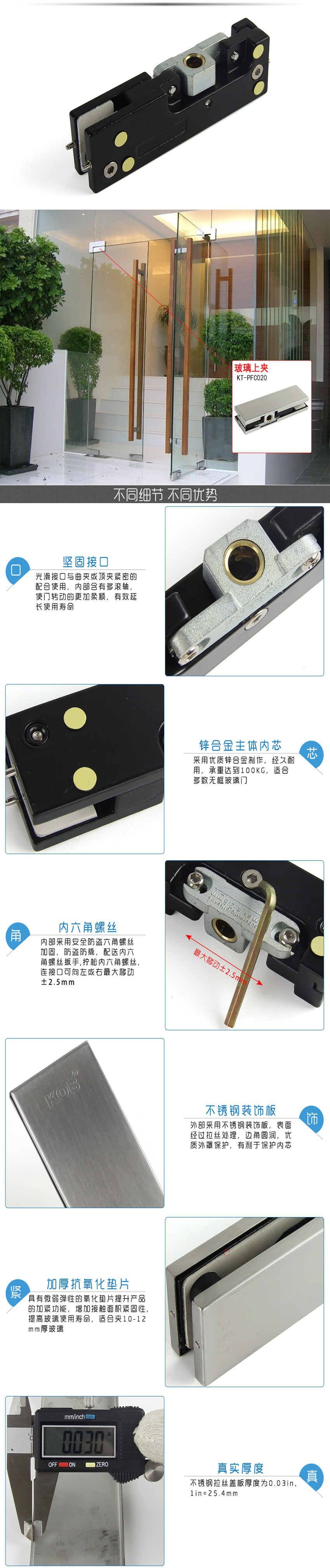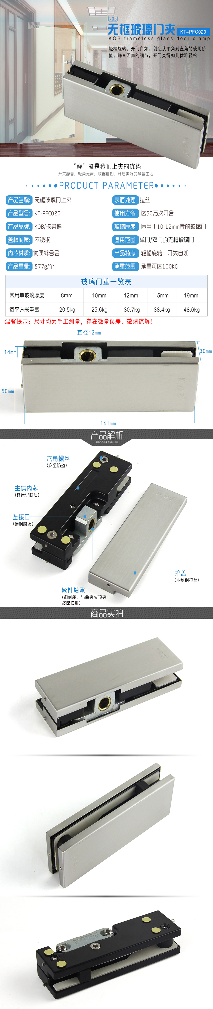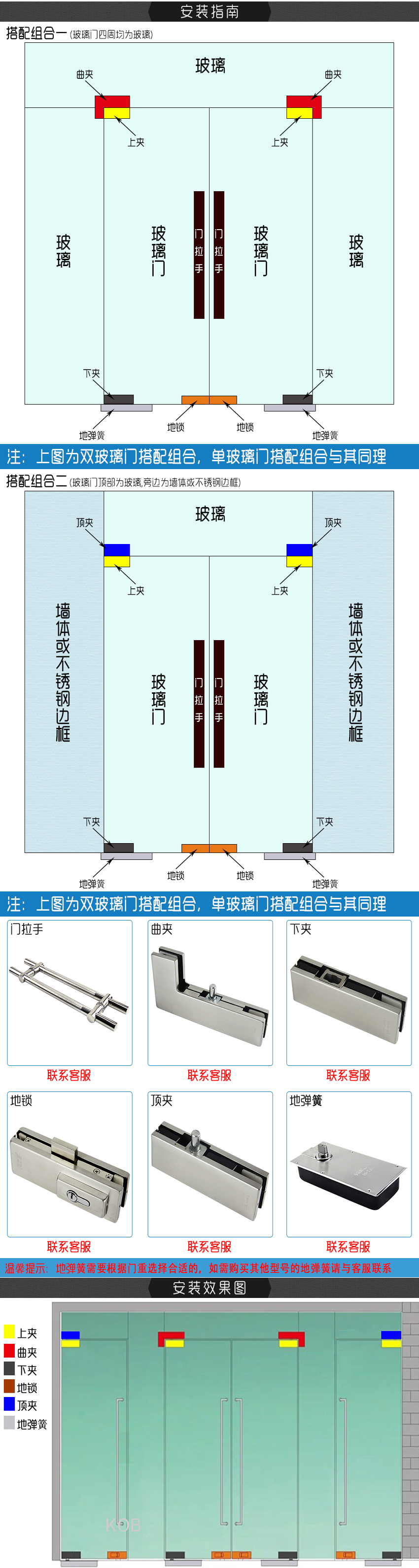 KOB品牌地彈簧上下玻璃門夾